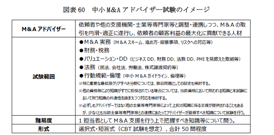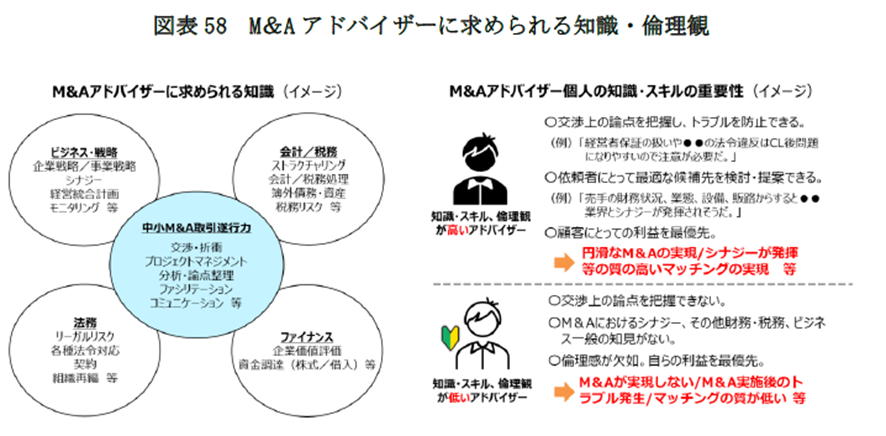 中小M&A市場改革プランは、「新規参入のM&A支援機関が多く、知識・能力の向上が課題」と指摘し、アドバイザー個人レベルでの質の担保・向上を図っていく必要性を明記しています。